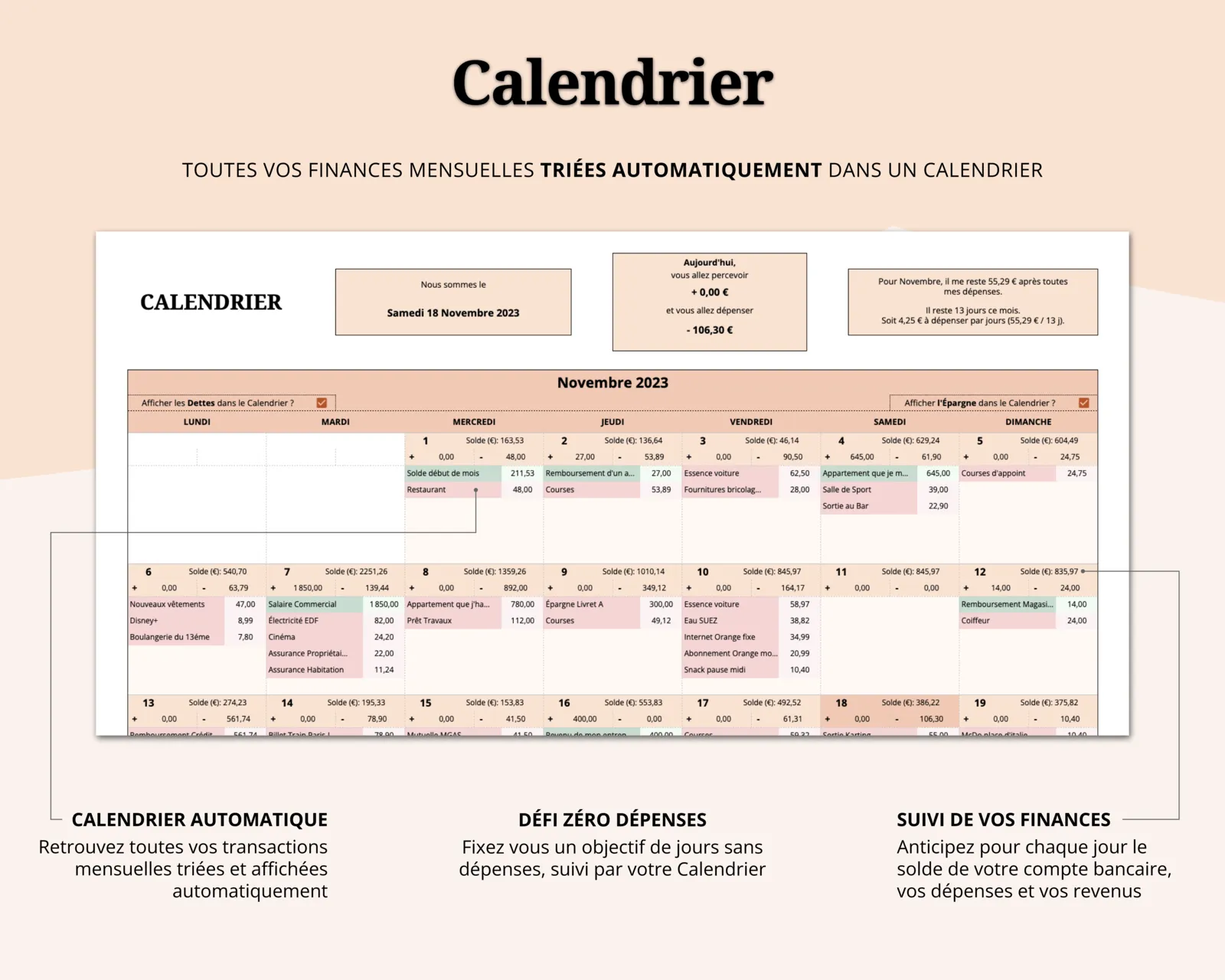 Ce tableur est le fruit d’un long développement basé sur les retours de nos utilisateurs et la recherche constante du meilleur Budget possible afin de faciliter la gestion financière de nos clients. Grâce à l’ensemble de ses fonctionnalités poussées tels que le calendrier automatique, les enveloppes ou encore le calcul prévisionnel de votre solde bancaire, vous aurez une vue d’ensemble claires sur vos finances au quotidien. De plus, notre tableur est conçu pour s’adapter à votre style de vie en vous donnant le choix entre deux méthodes de calculs pour anticiper vos dépenses. Finalement, tous ces atouts font de ce budget l’outil indispensable qui vous permettra d’atteindre vos objectifs financiers une bonne fois pour toutes !